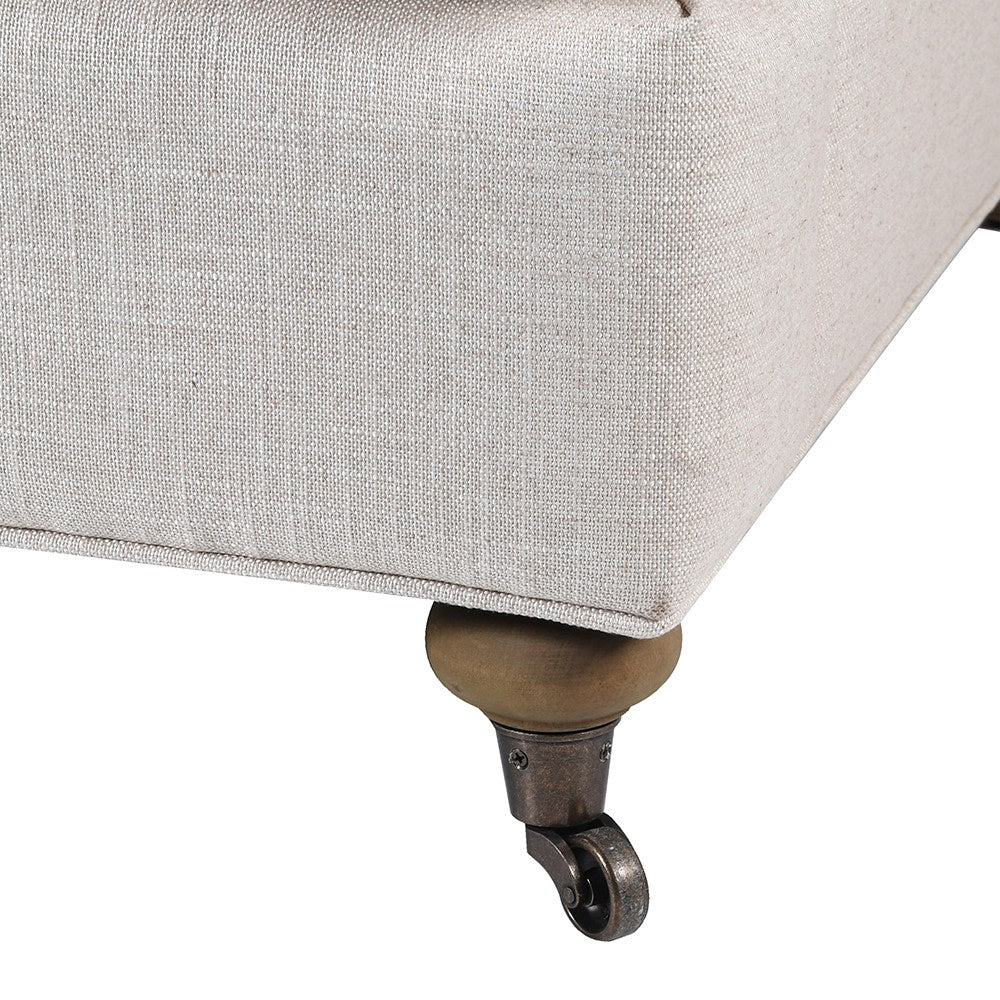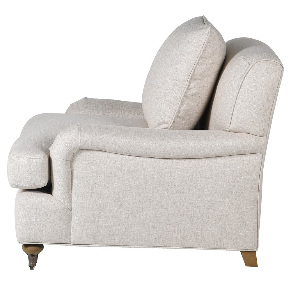 The Ronald Chair brings fabulous comfort and refined European style together in one beautifully crafted piece. Inspired by the silhouette of a classic Belgian roll loveseat, it features gracefully curved arms, generous proportions, and a gorgeous beige fabric that blends seamlessly with neutral or contemporary interiors.