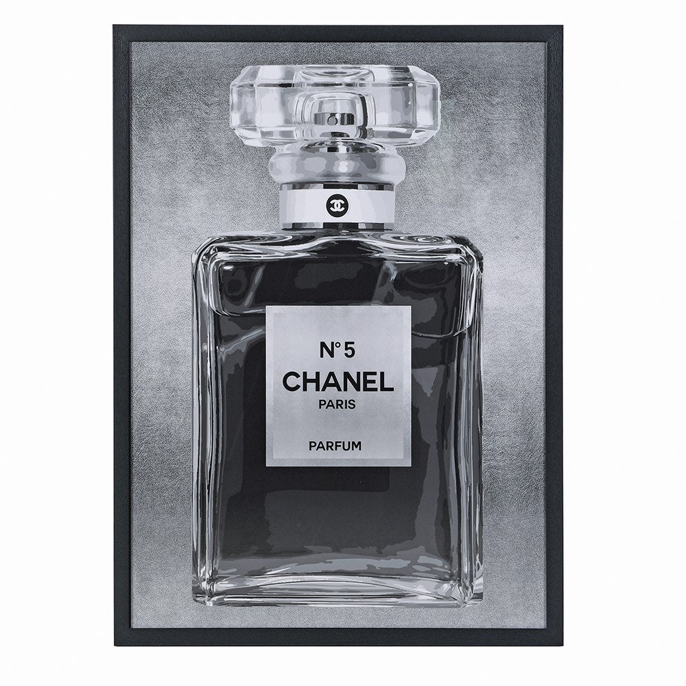 🖼️ Design: Monochrome perfume-bottle motif with a sleek, high-gloss finish and metallic backdrop.